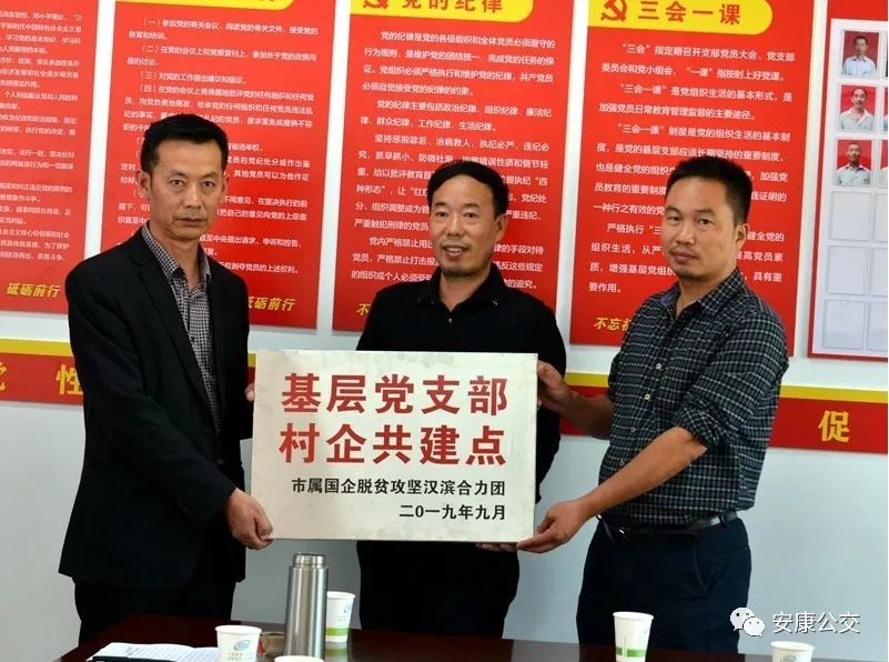 (市公交公司黨委副書記錢萬輝和市水務(wù)集團公司總會計師陳世安共同為“基層支部村企共建點”授牌)
