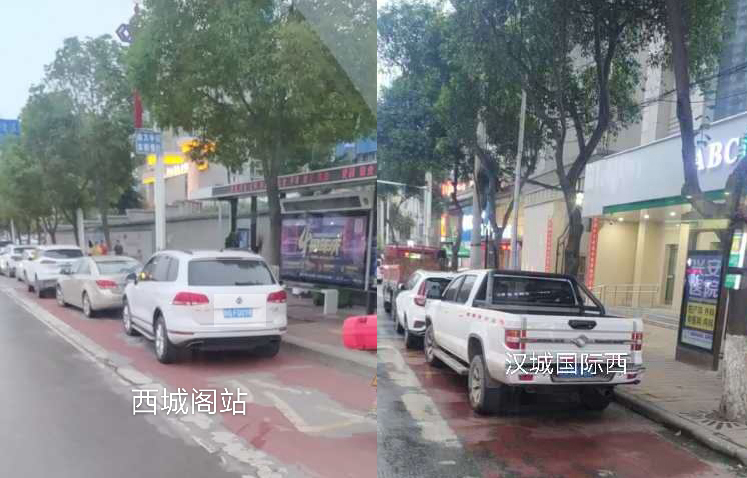 在金州廣場(chǎng)南站,十幾輛私家車“整齊劃一”的停在公交車站位置,地面紅色區(qū)域上的公交兩字也被完全覆蓋,從遠(yuǎn)處望去,站牌旁坐著幾個(gè)人正等待公交車的到來(lái)。在興華名城站,一輛私家車??吭诠卉囌厩?,駛來(lái)的公交車無(wú)法按其規(guī)定進(jìn)站停車。在西城閣站和漢城國(guó)際西站,幾輛私家車甚是“任性”,儼然將公交車站當(dāng)成了“停車場(chǎng)”,筆者在此駐足十幾分鐘,它們依然“紋絲不動(dòng)”,有的車上甚至沒(méi)有車主。